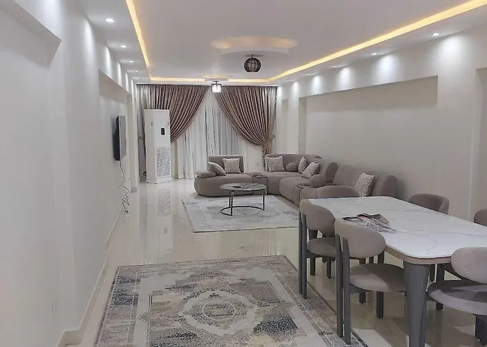 Luxury Apartment At Giza includes a balcony, a living room, and a kitchen with an air conditioner for utmost comfort. For added convenience, a hot tub are available at the apartment.